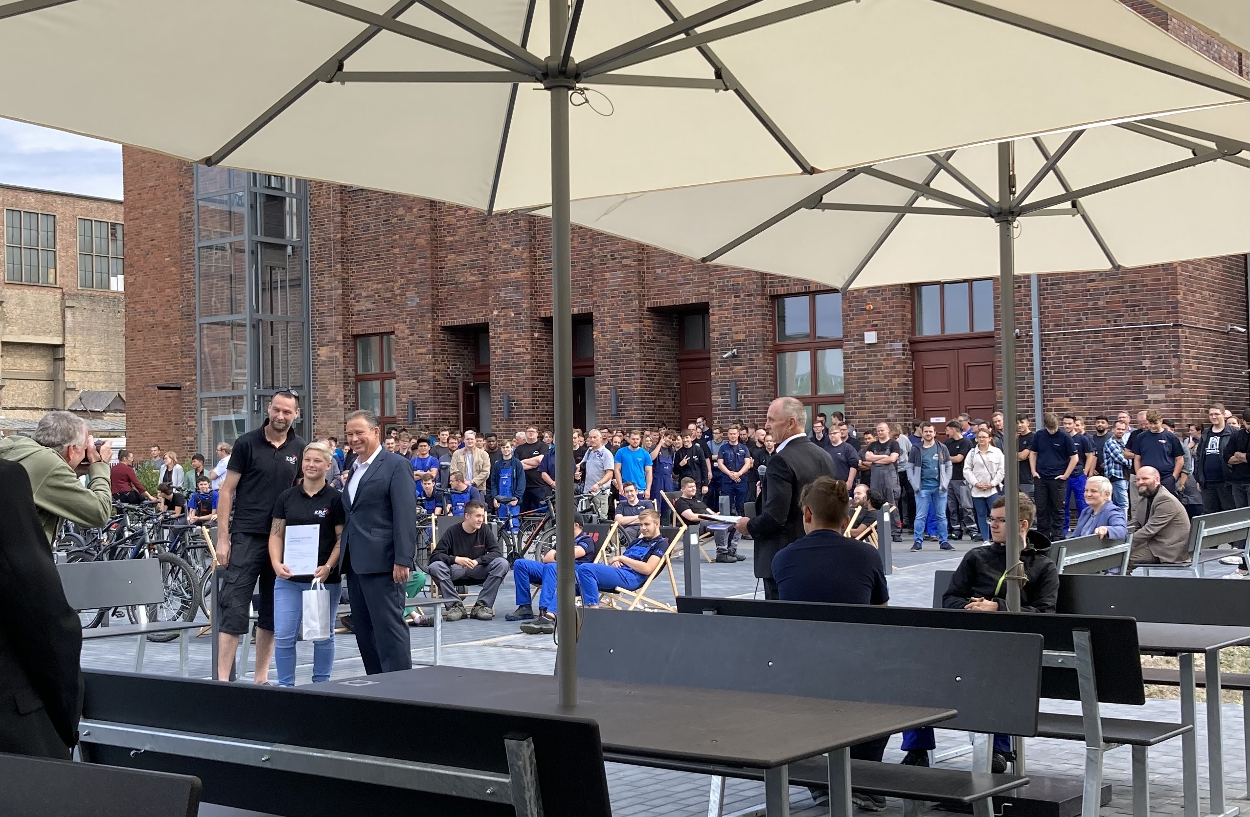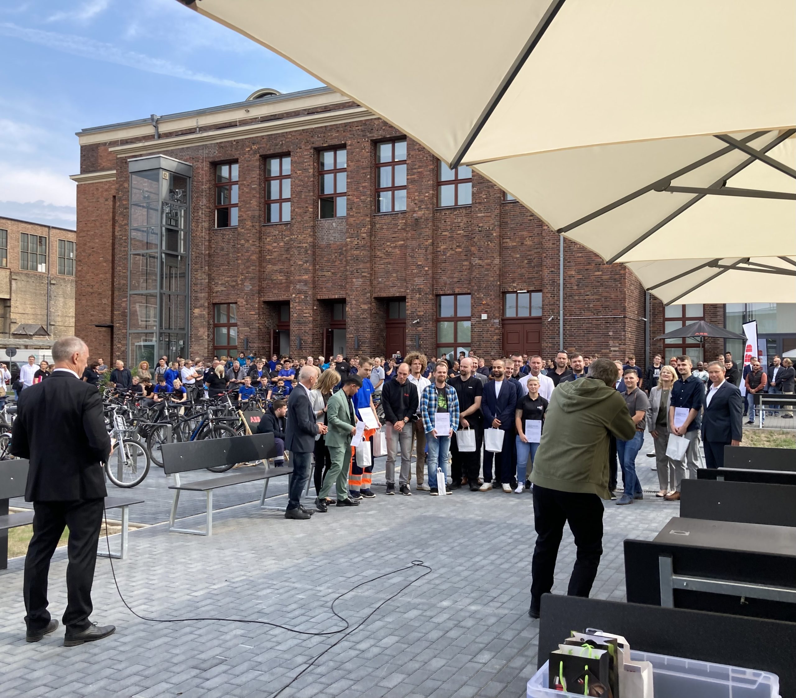 Neben der Begrüßung der neuen Auszubildenden wurden zwölf Frühauslerner:innen für ihre Leistungen geehrt – Herzlichen Glückwunsch! Nach der Eröffnung durch den Leiter des Ausbildungszentrums Berlin, Gerd Woweries und der Ehrung der besten Auszubildenden, gab es musikalisches Programm durch die Liveband „Tango Bravo“ und ein Mittagessen direkt vom Grill.