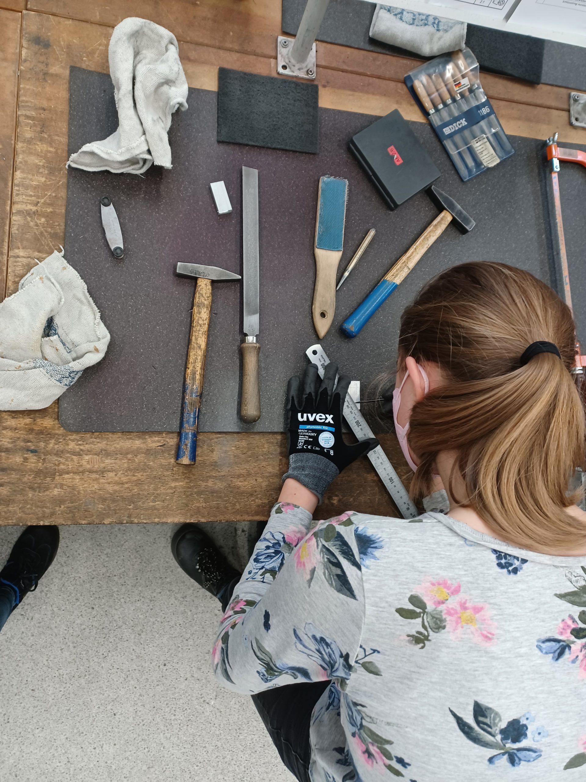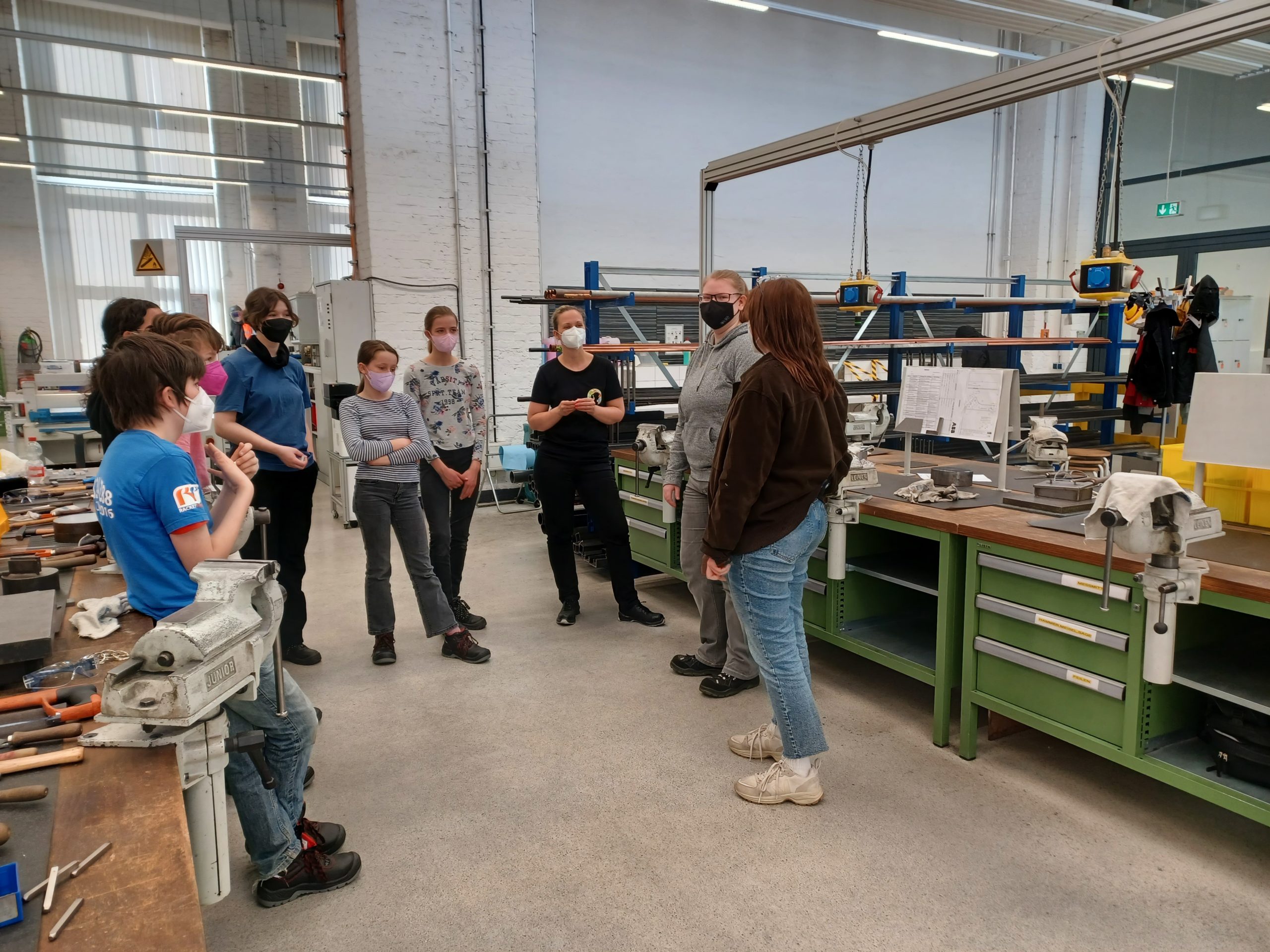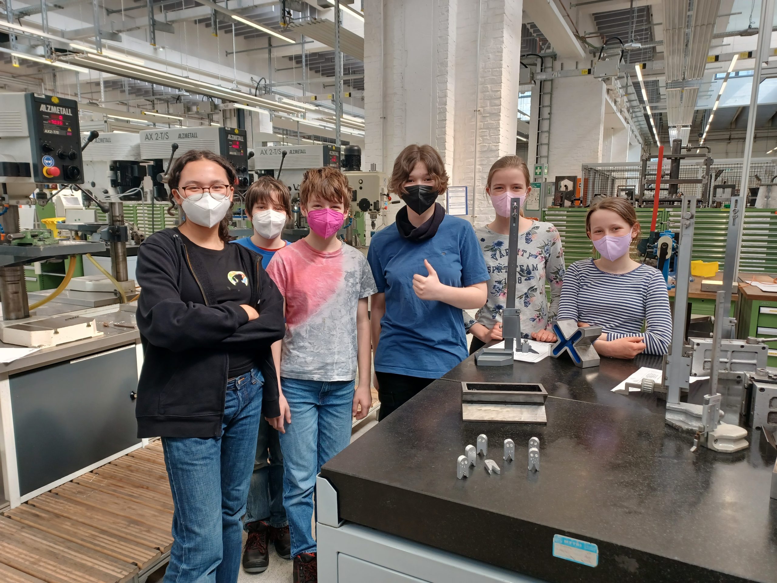 Für den dritten Tag des Technik-Camps benötigten die Teilnehmenden ältere Kleidung, denn „wo gehobelt wird, fallen (Metall-)Späne“. Es ging in die Werkstatt zur Metallverarbeitung. Angekommen in der Werkstatt gab es zunächst ein Treffen und Q&A mit zwei girlsatec-Botschafterinnen, die spannende Dinge aus ihrem Arbeitsalltag berichteten. Nach dem Lauschen der interessanten Beiträge durften die Teilnehmenden wieder selbst tätig werden und aus Aluminium einen Schlüsselanhänger feilen und bohren. Die Schülerinnen und Schüler waren nach diesem Tag sichtbar stolz und zufrieden mit ihren Gespenster-Anhängern! Fotos der Ergebnisse uns Eindrücke aus dem Technik-Camp sind weiter unten zu sehen. Auf unserem Instagram-Kanal finden sich neben Fotos auch kurze Videos für einen noch besseren Einblick!