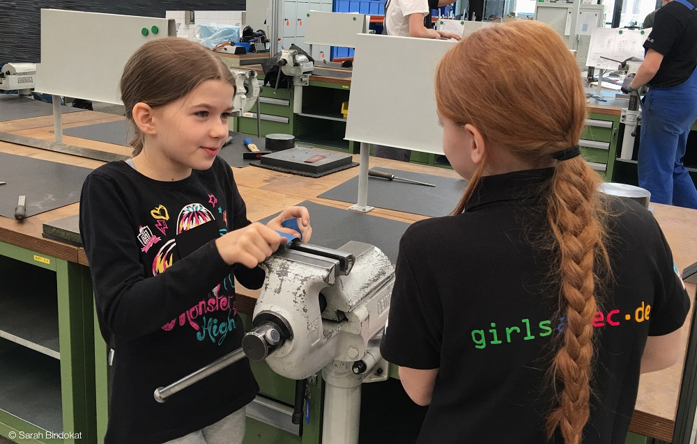 Metallbearbeitung und Robotiks standen heute auf dem Plan beim Girls‘ Day bei girlsatec